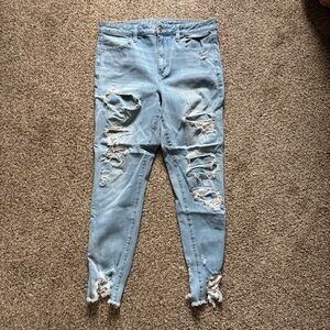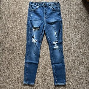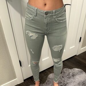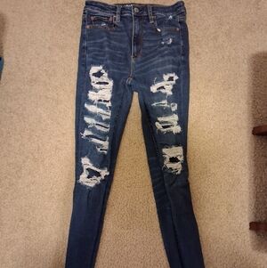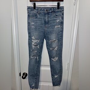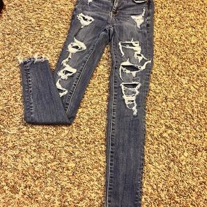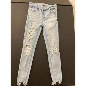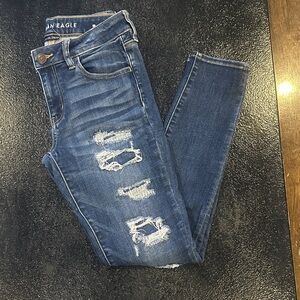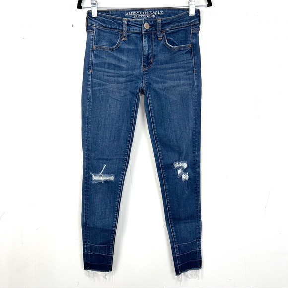 American Eagle Jegging Jeans Size 2 Dark Wash Stretch Released Frayed Hem