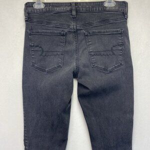American Eagle Jegging Mid-Rise Ripped Skinny Jeans Women 6R Black Dark Wash