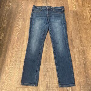 American Eagle Jegging. (2) Size 14. Inseam 30”. 8” rise. 99% cotton, 1% Spandex. 2 stitches to look like front pockets and 2 back pockets. Zip and button closure. No holes, tears or stains. Still in great used condition. Please see photos.