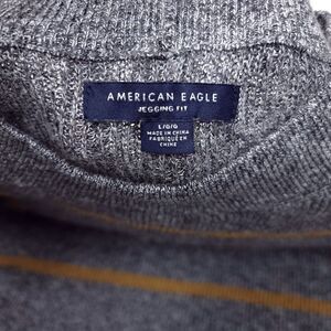 American Eagle Jegging Fit Crew Neck Sweatshirt Womens Large Striped Yellow Gray
