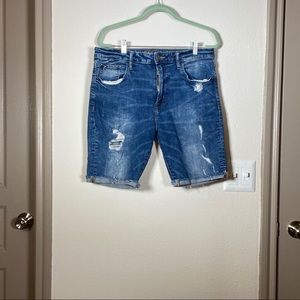 Men’s American Eagle Outfitters Extreme Flex distressed denim cutoff jean shorts (jorts). Great for ladies too!