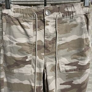 American Eagle Jogger Jeans Size 0R Beige Camo Denim Drawstring Zip Ankles