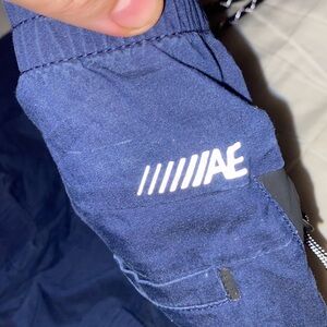 These jogger pants are made of like a windbreaker texture. They’re very very lightweight. Extremely lightweight, but they still keep you nice and snug. They’re really comfortable and really stretchy. They have a drawstring on the second time short on the right side pocket. It’s a zipper so you can zip it up and down to put stuff in and they’re a size medium.