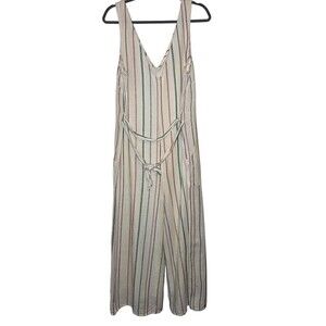 American Eagle Jumpsuit Medium Linen Blend Wide Leg Patch Pockets Granola Beach