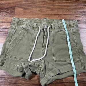 American Eagle Khaki Drawstring Shorts Green Stretch Cotton Cuffed Women Size 10