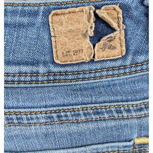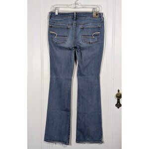 American Eagle Kick Boot Jeans Size 8 Regular Light Blue Wash Stretch Denim VTG. Measures approximately 15.5" flat across at the waist and 29.5" inseam