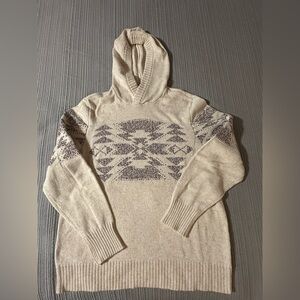 Cozy cream sweater with a bold geometric design. Features a comfortable hood. Ideal for layering. Purchased for my son, worn once in excellent condition.