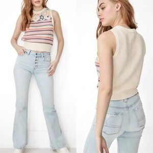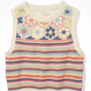 American Eagle Knit Floral Striped Sleeveless Sweater