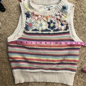 American Eagle Knit Floral Striped Sleeveless Sweater Size Small