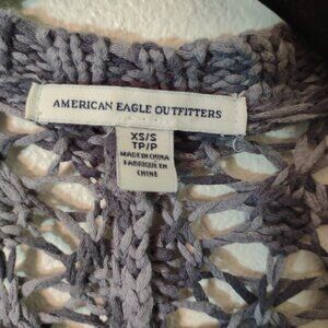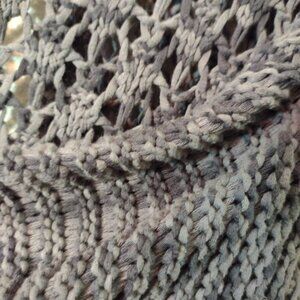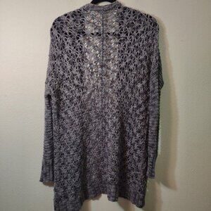 Shades of grayish blue lose knit cardigan sweater. Open. longer tunic length.