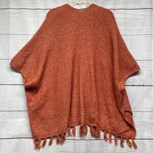 American Eagle Knit Poncho Komono Wrap Shawl Cardigan Sweater Fringe Size OS
