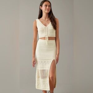 American Eagle Knit Slit Midi Skirt, Cotton, medium