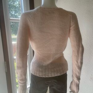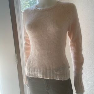 Soft slightly fuzzy knit sweater with crewneck neckline. Great used condition Size L Pink