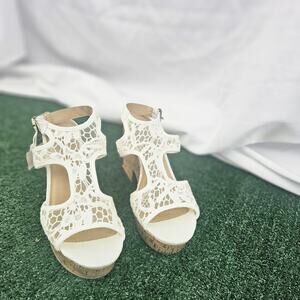 American Eagle Lace Strap Peep Toe Wedge Women’s Shoes Cork Bottom Cream Size 9