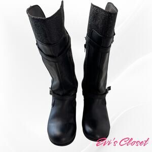 American Eagle Lexie Boots Womans Side Zip Buckle Black Speckled. Man Made Rubber Soles, Riding Boot Style. Sz 5