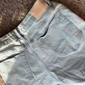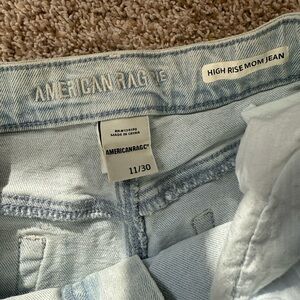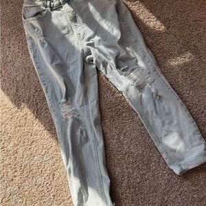 Stylish high rise mom jeans. Light blue wash. Ideal for everyday wear.