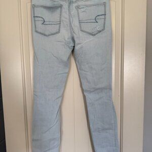 Some patched rips on legs Some non-patched rips on legs Stretch Jean Size 8 Long Jeans