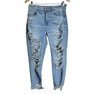 American Eagle Light Blue Ripped Stretch Mom Jeans size 6 short