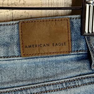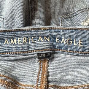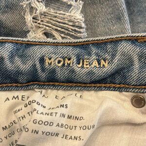 American Eagle Light Blue Ripped Stretch Mom Jeans size 6 short in EUC. Comes from a smoke free dog home. Bin C