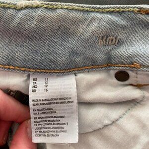 Light wash American Eagle denim shorts. More distressed/ripped than initial purchase, but that’s the only flaw. Midi rise. #denimshorts #distressedshorts #distresseddenim