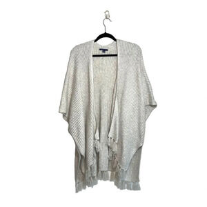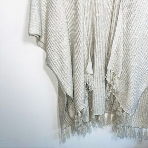 American Eagle Light Gray Fringe Tassel Hem Knit Poncho Sweater One Size Women’s