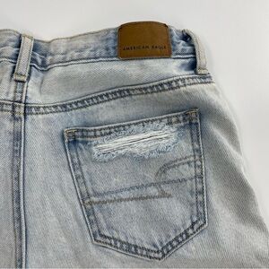 American Eagle Light Wash Bermuda Deconstructed mom shorts. Light white wash color. High rise and distressed