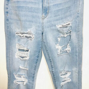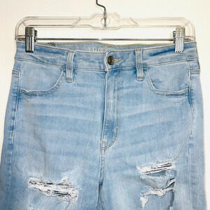 American Eagle Light Wash Distressed Super High Rise Crop Jeans 8 Women’s