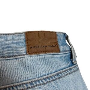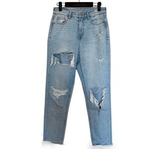 American Eagle Light Wash Mom Jean Heavily Distressed Punched Out Knee Size 0