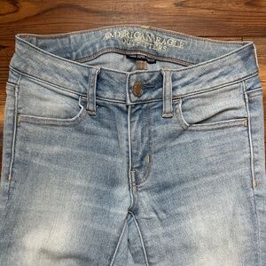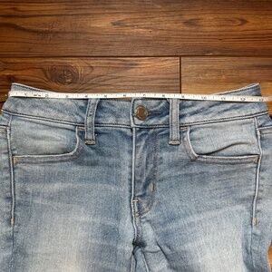 Lightwash AEO jeggings with super super stretch. In perfect condition from a smoke-free home. Please note that these are a 0 Short. 13" waist. 26" inseam.
