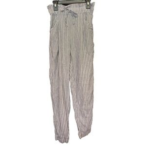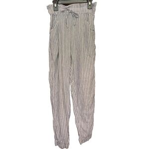 American Eagle Linen Beach Pants Size XS Blue and White Striped Paperbag Waist