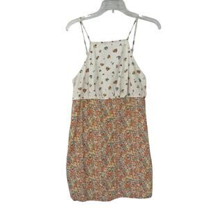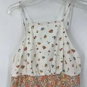 American Eagle Linen Blend Micro Floral Sundress Sz Medium Cream Cottage Halter