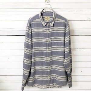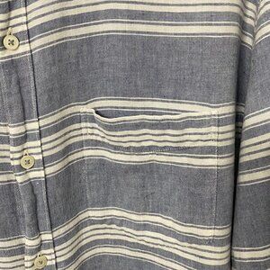 American Eagle Long Sleeve Linen Bone/Chambray Striped Button Down Shirt, XXL
