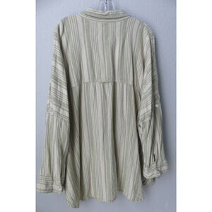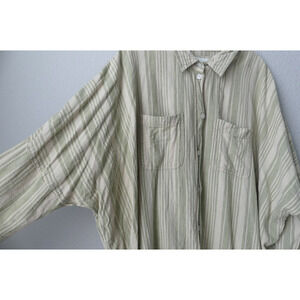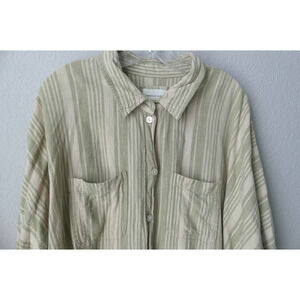 American Eagle Linen Striped Shirt XL Button Oversized Green Woven Cream