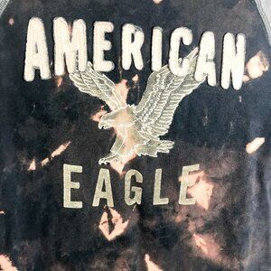 American Eagle Logo Spell Out Classic Baseball Tee Tie Dye Mens XS Black
