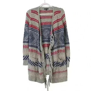 American Eagle Long Cardigan Sweater Size Small Aztec Southwestern Tribal Fringe