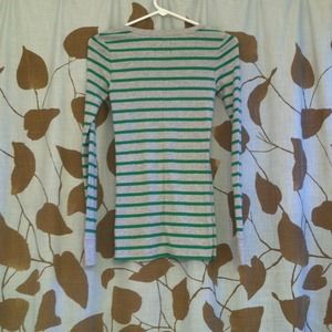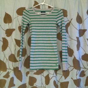 It is an xs long sleeve American Eagle Striped shirt. It is green and gray and is super cute!