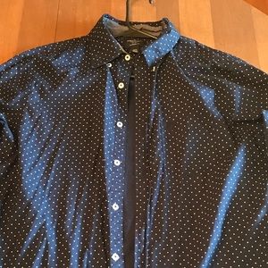 An American Eagle Long Sleeve Button up shirt. Navy blue with white dot pattern. Size medium and is in Great condition!!