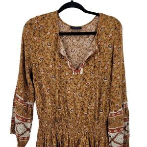 American Eagle Long Sleeve Dress Size Large Long Rust Floral Smocked Mini Boho