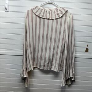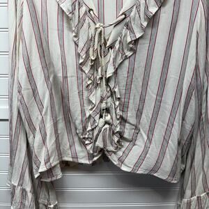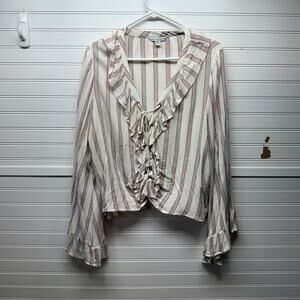 American Eagle Long Sleeve Ruffle & Tie Front Blouse Size XL