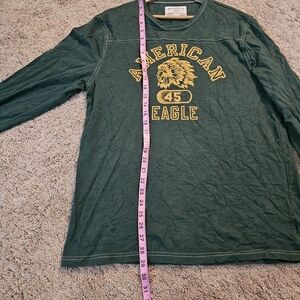 American Eagle Long Sleeved Green Indian Graphic Shirt Size Large