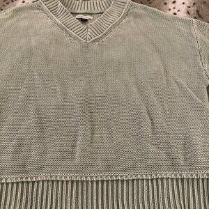 Oversized loose knit fisherman's sweater. The color is light green but I think the lighting is making it look off.