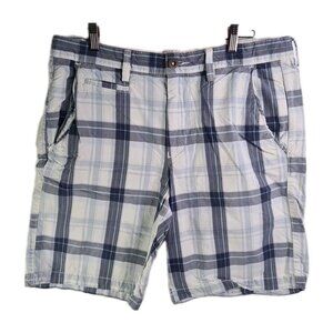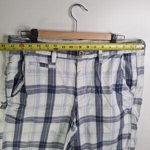 American Eagle Longer Length Shorts Mens Plaid Casual Sportswear Blue Size 34