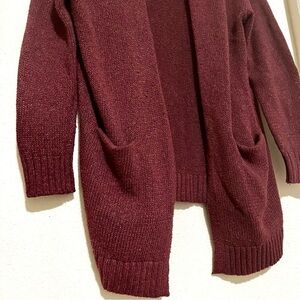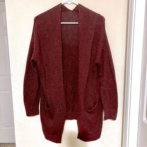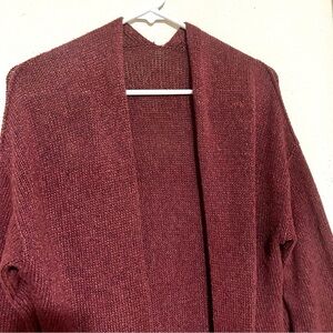 American Eagle Longline slouchy Open front knit Stitch Burgundy Cardigan size M