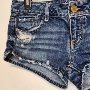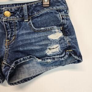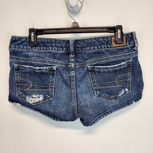 American Eagle Low Waist Micro Denim Shorts Size 4 Blue Distressed Ripped Y2K