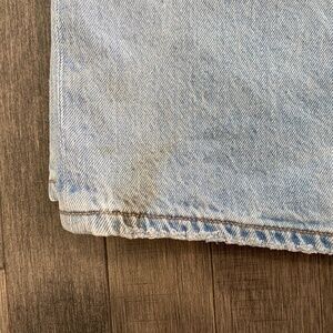 Jeans have been lightly worn and well taken care of. Washed in cold water wash and hung to dry to prevent wash wear and shrinkage. They were a bit long on my daughter so the hems dragged a bit and there are two spots as shown in the last two photos. They are on the backs of the legs. I only noticed as I was taking pics so I have not tried to remove with stain remover or oxy. (They have been freshly washed and not put into dryer so stains are not set in). Otherwise in great pre-worn condition.