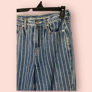 American Eagle MOM JEANS Womens 0 Blue White STRIPED Denim HIGH RISE