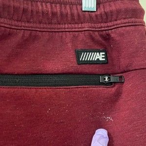 American Eagle Maroon Fleece Elastic Drawstring Waist Jogger Pants Size Large