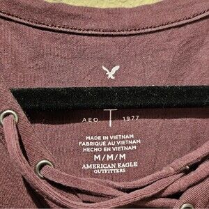American Eagle Maroon Short Sleeve Lace Front Top Size Medium