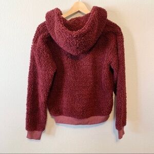 American Eagle Maroon Teddy Bear Fuzzy Sherpa Half Zip Sweater. Size small. Maroon sweatshirt. Teddy bear style fuzzy pullover half zip sweatshirt. Very soft and well taken care of. Was hardly wormed measures about 21” across the chest laying flat and 22” long from shoulder to bottom hem.