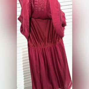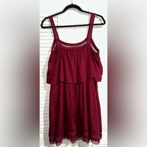 American Eagle Maroon Wine Boho Crochet Lace Eyelet Strappy Mini Dress Size M